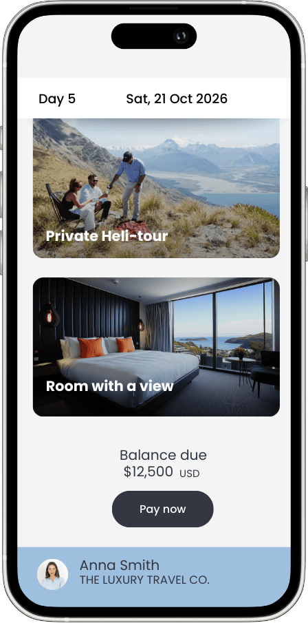 You’ve crafted a breathtaking, personalised itinerary. Your traveller is ready to book.